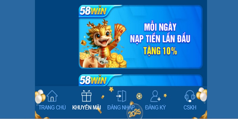 Sơ lược về ưu đãi 58WIN nạp đầu